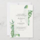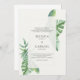 Cette belle faire-part de mariage dispose d'une verdure de feuilles tropicaux avec un arrière - plan crème et d'or faits saillants