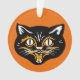 Classique Halloween Chat Noir Fangs Face Orange