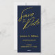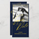 Nous sommes ravis de vous présenter notre Elégant Save the Date Invitation, un chef-d'oeuvre de sophistication et de raffinement. Mesurant 8" x 4", cette invitation est une étude en élégance intemporelle. L'arrière - plan bleu marine, riche et profond, dégage un air de formalité, ouvrant la voie à votre faire-part spécial. Au coeur du design se trouve une photo en noir et blanc captivante du couple heureux. Ce choix classique est un témoignage de la nature durable de votre amour. Le cadre de la photo est un luxueux carré d'or, ajoutant une touche d'opulence et soulignant la signification de l'occasion. Les mots "Save The Date" sont habilement rendus dans une police contemporaine, ce qui fait une déclaration audacieuse et indéniable. Ci-dessous, dans un alignement précis, la date et l'emplacement sont élégamment affichés, assurant à vos invités tous les détails essentiels à leur portée. La combinaison du bleu foncé, des accents dorés et de la photo noir et blanc intemporelle crée une atmosphère de beauté et de sophistication intemporelle. Cette invitation sert non seulement de faire-part mais aussi de prévisualisation de l'élégance et de l'amour qui imprégneront votre journée spéciale. Étendre votre invitation à vos chers amis et à votre famille, les invitant à partager la joie de votre prochaine célébration. Notre Elégante Invitation Save the Date est plus qu'une simple carte; c'est un reflet du style, de la grâce et de la signification de votre histoire d'amour.