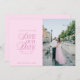 This classy elegant save the date card in pastel pink features a minimalist design with "save our date" styled in a mixture of classic text and elegant calligraphy script that lends a sophisticated, classy style with old money vibes. It also includes a placeholder for your photo that covers half of the front of the card. The back of the card includes an editable placeholder to indicate your wedding website URL, which can also be deleted if the URL is not yet available.