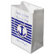 Sacs en papier de bienvenue mariage nautique avec Key Largo, destination Floride. Une carte à l'arrière a une grande étoile sur la zone de Key Largo. Je ferai une carte avec votre destination de Floride - contactez-moi à millhill11@gmail(dot)com. Ou choisissez un sac sans l'image de la carte. Large bande bleu marine et une grande ancre à l'avant, avec deux places supplémentaires pour le texte à l'envers. Inscrire les dates de l'événement et le nom du lieu.