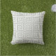 Coussin extérieur principal grec de gris argenté. Fabriqué aux Etats-Unis. Impression de haute qualité vive. Le jardin ou le patio résistant UV et de rouille se repose avec les motifs modernes dans des couleurs d'été. 16" ou 20" carré ou 13" par 21" rectangulaire. Insertion incluse. (Pour assortir les carreaux d'intérieur pour le divan ou le sofa, juste le coton ou le polyester choisi de l'étiquette de tissu).
