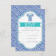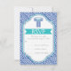 Clé bleue grecque et colonne mariage RSVP réponse ou carte de réponse. Une clé grecque design ou grecque fret ou méandre design motif en bleu, aqua et blanc, une colonne grecque bleu et turquoise et votre texte gris dans un cadre avec une bannière aqua. Moderne mais avec un look vintage dans un sens. Cet élégant avec des éléments classiques de l'ancien design grec est un modèle entièrement personnalisable et fait partie d'un ensemble mariage parfait pour un Geek d'été ou un mariage grec de destination.