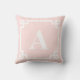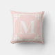 Coussin moderne et féminine avec une bordure de clé grecque rose et blanc avec monogramme. Ce coussin personnalisable sera un accent parfait pour n'importe quelle maison. D'autres couleurs sont disponibles.