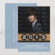 Clé et raffinée Classy Keys Graduation Invitation en bleu clair avec une bordure pointue en bois (art numérique) avec un ensemble de quatre clés de machine à écrire où chaque chiffre de l'année d'études supérieures peut être customisé. Cette invitation moderne est facile à customiser avec une photo des détails de la grade et de la fête de remise de diplômes. Cliquez sur "Customiser" pour trouver d'autres options de personnalisation.