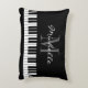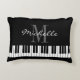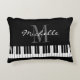 Les touches de piano noir et blanc accentuent la décoration coussin. Design monogramme élégant avec typographie de script stylisée et lettres initiales de nom. Idée cadeau mignonne pour professeur de piano, pianiste, musicien, cours d'école de musique etc. Convient aux hommes, femmes et enfants. Coussin de décoration pour canapé, canapé ou lit dans la chambre. Instrument classique.