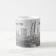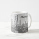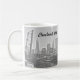 Impression classique noir et blanc de Cleveland, horizon de l'Ohio (vue sur la rivière). Une photo originale unique montre une vue iconique de Cleveland, sur une tasse à café en céramique robuste. Personnaliser pour ajouter un nom ou supprimer du texte. Aussi disponible en plusieurs tailles et mug de voyage.