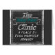 L'énonciation "la clinique à l'eau de rose de pokey, un endroit pour se tourner autour sur un tableau noir écrit dans la craie avec des polices et des embellissements d'amusement.