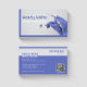 Le Carte de visite bleu de la clinique de soins dentaires met en évidence une photo de mains en gants bleus tenant des outils dentaires dans un arrière - plan blanc avec une bande bleue d'angle accent au bas gauche. Le nom commercial se trouve à l'intérieur de la limite immédiate des outils dentaires pour le souligner. L'utilisation de couleurs uniquement bleu et blanc est volontairement réglée pour obtenir un design minimaliste.