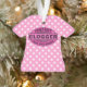 " Clogger instantané : Ajoutez juste la musique." Cette conception chemise-formée mignonne d'ornement pour des danseurs d'entrave comporte une bannière ovale aux nuances du rose, du pourpre et du blanc avec des notes et des rayures de musique. L'arrière - plan est rose-clair avec le pois blanc. C'est un joli, double face ornement pour la fan de danse d'entrave. Voir des variations et les conceptions obstruantes plus originales à notre lien de magasin de ClogDance !