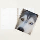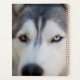 Visage stoïque fermé d'une canine malamute de l'Alaska (Husky de Sibérie) avec deux yeux colorés différents (hétérochromie).