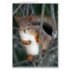 Photo de clôture d'un mignon petit écureuil de couleur rouge assis au milieu des branches d'arbres
