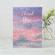 These girl baby shower Invitations feature a We're on Cloud 9 design theme. Pink, purple blue ethereal watercolor sky with pink, white color typography. Image copyright Marg Seregelyi Photography.