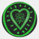 Design unique et contemporain pour la St Patrick's Day avec grand coeur stylisé + trèfle (feuilles du coeur dans le coeur) sur autocollant rond noir. Carte postale, affranchissement et plus encore... N'oubliez pas toute la collection.