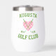 Ce cave à vin personnalisable dispose de deux clubs de golf devant un coeur à damiers avec le texte "Augusta Golf Club". Le texte et les couleurs du graphique sont tous modifiables sur cette conception.