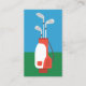 Cartes de visite de golf avec un sac de golf rouge et blanc avec des clubs sur arrière - plan vert et bleu.