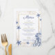 Present your wedding feast with this elegant Coastal Wedding Dinner Menu Card. This menu features a striking navy blue and faux gold glitter border, adorned with watercolor starfish, sea coral, and a jellyfish. The luxurious design is perfect for a beach, yacht club, or seaside reception, adding an upscale maritime feel to your tablescape. Easily customize the template to list your Starter, Main, and Dessert courses. Perfect for a Coastal or Destination Wedding.