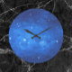 Magnifique horloge murale bleu cobalt avec une représentation de l'espace. Apportez l'univers dans votre maison ou votre bureau avec cette horloge unique!
