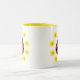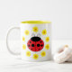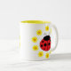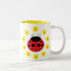 Conception assez petite de coccinelle avec les marguerites jaunes sur une tasse de café.