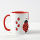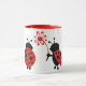 Tasse combinée lunatique avec une paire des coccinelles et d'une fleur en rouge, noir, et le blanc.