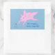 Peinture d'un cochon volant rose avec une baguette faisant des étoiles bleues, avec, "C'est magique... quand les cochons volent" imprimé sur des autocollants rectangle.customisez facilement le texte ou supprimez-le.