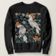 This sweatshirt features two cockatoos perched on a branch, surrounded by leaves and flowers.