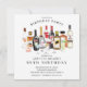 Une invitation unique à Cocktail anniversaire avec un cocktail d'aquarelle avec des bouteilles d'alcool sur un arrière - plan blanc avec un dos de coordination.