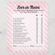 Commencez la fête avec Ever ou Never Pink Cocktail Jeu d'Anniversaire! Ce jeu amusant et festif comporte une série de questions personnalisables qui feront divertir et rire vos invités tout au long de la célébration. Parfait pour les anniversaires, les douches nuptiales ou tout rassemblement festif, ce jeu ajoute une touche ludique à votre événement. Que vous alliez des cocktails avec des bonbons ou que vous répondiez à des questions excentriques, c’est un excellent moyen d’attirer vos invités et de créer des moments mémorables. Customisez les questions pour convenir à votre thème de fête et regardez le plaisir se dérouler!