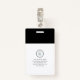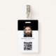 badges d'identité professionnelle avec un arrière - plan noir et blanc, photo de l'employé, nom, profession, code QR, logo d'entreprise et détails de l'entreprise.