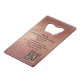 Mettez en avant vos services professionnels avec cet ouvre-bouteille rose gold pailleté et noir. Vous pouvez facilement modifier toutes les informations pour les remplacer par les vôtres en sélectionnant "Personnaliser ce modèle" sur le côté droit de la page, et en les saisissant dans les champs du modèle. Si vous souhaitez de l'aide pour ce faire, ou si vous avez d'autres questions, n'hésitez pas à me contacter à julieartwork4@gmail.com ou via la messagerie Zazzle et je serai ravie de vous aider ! Si ce design vous plaît et que vous souhaitez que je conçoive une carte de visite ou d'autres produits Zazzle, spécialement adaptés à vos besoins, contactez-moi également. Merci de visiter la boutique JulieArtwork et passez une excellente journée !