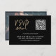 Créez une déclaration élégante avec cette carte RSVP mariage noir et or chic. Avec une calligraphie élégante, un accent botanique faux or simple et un code QR pratique, ce design combine sophistication et fonctionnalité moderne. Parfait pour un mariage contemporain, il offre à vos invités un moyen raffiné et sans effort de se rendre à RSVP dans le style.