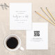 Code QR simple noir et blanc. Une alternative à petit budget de 4,5 ”x 5,6”. Disponible sur du CARTON 110 lb SEMI-BRILLANT (par défaut, plus épais pour les invitations) OU sur du PAPIER 80 lb FINITION SATIN (idéal pour les enclos). Ajoutez votre code QR à votre site web de mariage au verso. Un design simple et élégant en noir et blanc pour inviter vos invités à enregistrer votre date. « Kindly Save Our Date » est dans un script moderne au centre. Le reste du texte peut être facilement personnalisé. Les couleurs du texte et du fond peuvent être modifiées si vous le souhaitez pour mieux correspondre à votre thème de mariage via l'option de personnalisation supplémentaire.