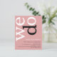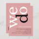 Une alternative de BUDGET rapport qualité-prix sur un format plus petit de 4,5 x 5,6” semi-brillant 110lbs, qui est d'une épaisseur similaire à celle d'une carte postale (mais ne convient pas comme carte postale). VEUILLEZ NOTER qu'il y a UNE invitation par feuille. BUDGET Invitation de mariage simple avec code QR et texte rose poussiéreux. Ajoutez votre code QR sur votre site web de mariage au verso pour que vos invités puissent répondre et voir tous les détails en ligne sans avoir besoin d'insertions séparées. Un design typographique moderne avec "Nous nous marions" en grandes lettres blanches avec le "d" en noir, tourné et sur le côté gauche sur un fond rose poussiéreux clair. Les couleurs de fond peuvent être modifiées si vous le souhaitez via "Personnaliser davantage".