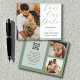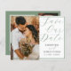 Une élégante annonce de sauvegarde de la date est parfaite pour mettre vos plans de mariage en mouvement. Elle comporte un modèle de photo et une grande typographie 'save the date' en vert sauge sur fond blanc. Personnalisez avec vos propres détails.