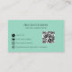 Ce carte de visite unique est parfait pour le propriétaire qui veut une pop amusante de couleur violet et menthe. Il dispose d'une ambiance abstraite moderne et a un code QR sur le dos que vous pouvez personnaliser avec votre site Web spécifique pour aider vos clients à réserver des rendez-vous avec vous efficacement ainsi que de trouver toute information nécessaire en rapport avec votre entreprise. Amusez-vous avec ça et démarrez-vous !