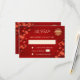 Le cerisier rouge fleurit sur un arrière - plan rouge chatoyant et un double symbole de bonheur doré. Carte Mariage chinoise RSVP. À l'arrière se trouve un code qr scannable pour votre site mariage.