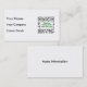 Il s'agit d'un carte de visite entièrement personnalisable qui utilise les codes d'analyse QR. Les codes QR sont comme de grands codes à barres avec des motifs à points noirs et blancs. Ils vous permettent d'encoder du texte, une URL, un numéro de téléphone ou des SMS sur papier à lettres et de permettre à n'importe qui de lire le code et d'afficher le contenu sur leur téléphone portable avec une fonction de code d'analyse QR (De nombreuses marques de téléphones mobiles peuvent maintenant lire les codes avec une application et leur caméra intégrée).