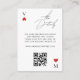 La carte de détails de mariage avec code QR de la carte à jouer du casino de Vegas ajoute une touche amusante et interactive à votre suite de mariage. Présentant un design audacieux de style casino, cette carte comprend des informations essentielles pour vos invités telles que le lieu, l'hébergement ou les instructions spéciales, avec un code QR scannable pour un accès facile à votre site web de mariage ou à votre page de réponse. Parfaite pour un mariage sur le thème de Las Vegas ou du casino, elle allie ludicité, fonctionnalité et élégance.