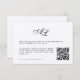 Cette carte RSVP classique avec QR Code est accentuée par un noir croustillant sur le motif monogramme blanc des initiales de mariée et mariée dans la calligraphie script sur papier texturé ecru. Un choix parfait pour des thèmes mariage classiques et formels avec ses caractéristiques minimalistes simples et sa belle typographie traditionnelle. Consultez le reste de la collection pour répondre à vos besoins mariages.