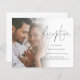 Un rapport qualité-prix BUDGET alternative sur une taille plus petite 4,5 x 5,6" semi-brillant poids 110lbs, qui est d'une épaisseur similaire à une carte postale (cependant ne convient pas à l'utilisation comme carte postale.) VEUILLEZ NOTER qu'il y a UN invitation par feuille. Détails de la réception du code QR du script budgétaire Boîtier. Remplacez simplement l'exemple de photo par votre préféré. Un calque de superposition de dégradé se trouve au-dessus de votre photo, de sorte qu'il s'évanouit lorsqu'il atteint le centre avec le texte partiellement recouvert sur le dessus. Evenine Party est dans un script moderne et personnalise facilement le reste du texte. Remplacez le code QR au verso par un code QR sur votre site Web mariage. Vous pouvez créer des codes QR gratuitement en ligne. Il suffit de chercher "créateur de code QR" et beaucoup d'options viennent créer gratuitement. Vous pouvez également supprimer le code QR et le texte au verso si cela n'est pas nécessaire via personnaliser plus loin.