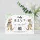 Ravissez vos invités avec cette carte de réponse au mariage à thème dinosaure amusant avec code QR. Jolie mariée et marié dinosaures avec feuillage botanique aquarelle. Facile à personnaliser avec la date du mariage et le code QR avec les détails de la réponse. Illustrations de mariés T-Rex dinosaures avec typographie moderne et feuillage d'eucalyptus aquarelle. Œuvre d'art originale unique de l'artiste Catherine Sweetman