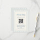Une carte de réponse en ligne formelle et élégante avec des informations sur votre site web de mariage afin que les invités puissent répondre en ligne. Ce design présente des rayures bleues preppy en arrière-plan et une typographie élégante et intemporelle. N'oubliez pas de remplacer l'URL du code QR par l'URL de votre propre site web.