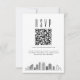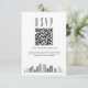 Une carte de code QR de réponse pour mariage minimaliste avec une belle skyline stylisée représentant la ville de Houston. Remplacez le code QR par un code menant à votre site web pour aider vos invités à répondre plus facilement à votre événement de mariage.