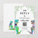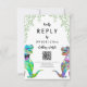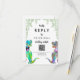 Carte de réponse de mariage sur le thème des dinosaures avec QR code pour RSVP en ligne, avec une mariée et un marié dinosaures drôles entourés de feuillage d'eucalyptus aquarelle pour apporter une joie préhistorique jurassique à votre jour de mariage. Typographie fantaisiste moderne avec des modèles faciles à personnaliser pour que vous puissiez ajouter le code QR du site web de mariage et l'adresse web ainsi que des instructions utiles pour les invités. Un couple de mariés T-Rex funky et psychédélique unique avec une illustration originale de verdure botanique aquarelle par l'artiste Catherine Sweetman. Idéal pour la réception de mariage ou le dîner de répétition. La suite de mariage assortie comprend tout ce dont vous aurez besoin pour votre voyage de mariage amusant.