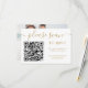 Une simple et élégante carte de réponse avec écriture or comprenant votre propre code QR et les détails de votre site web de mariage, dans une typographie chic et une photo spéciale au verso. Conçu par Thisisnotme©