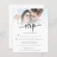 Un rapport qualité-prix BUDGET alternative sur une taille plus petite 4,5 x 5,6" semi-brillant poids 110lbs, qui est d'une épaisseur similaire à une carte postale (cependant ne convient pas à l'utilisation comme carte postale.) VEUILLEZ NOTER qu'il y a UN invitation par feuille. Budget Photo Overlay Code QR Mariage RSVP. Offrez à vos invités la commodité de renvoyer leur réponse ou de répondre en ligne. Ou supprimez le code Qr et le texte au verso si vous n'en avez pas besoin. Ajoutez votre code QR à la page de réponse de votre site Web mariage au verso pour une autre option. Une typographie informelle en noir pour le titre principal RSVP et le reste du texte qui peut facilement personnaliser. Remplacez l'exemple de photo par votre préféré d'orientation du paysage.