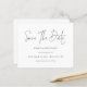 Script QR Code Wedding Enregistrer La Date. Un prix économique PETIT 4,5 po x 5,6 po alternatif. Disponible dans un STOCK SEMI-GLOSS 110 lb CARD qui est l'option par défaut (plus épais pour les invitations), OU un STOCK SATIN FINISH 80 lb THINNER PAPER (idéal pour les boîtiers). Une élégance simple avec Save The Date dans un script moderne.Le reste du texte que vous pouvez facilement personnaliser. Avec votre code QR à votre site web mariage au dos. Montré ici en noir sur blanc mais le texte et les couleurs arrière - plans peuvent être changés si vous le souhaitez via l'option customiser plus loin.