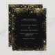 Une invitation de mariage moderne et élégante. Arrière - plan noir décoré de parties scintillant faux or scintillent. Personnalisez et ajoutez vos noms et les détails du mariage. Lettres de couleur blanche. Précédent : ajoutez votre lien/url à votre site Web mariage pour obtenir des informations et/ou RSVP. 1 feuille = 1 invitation imprimé bord à bord.