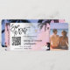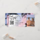 Destination Beach Wedding Boarding Pass Billet Gold Plane Enregistrer la date avec l'icône du coeur et de l'avion avec simple ligne minimaliste carte du monde et fond de plage de palmiersAjouter votre code QR