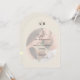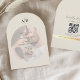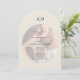 Faire et moderne carte d'invitation de mariage en forme d'arche avec une superposition de photo romantique et un monogramme minimaliste en haut.